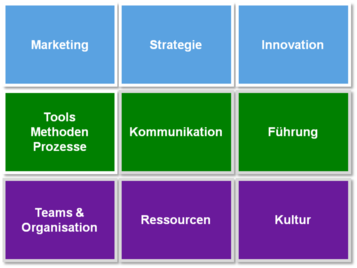 Um Ihr Kreativitäts- und Innovationsmanagement ganzheitlich aufbauen und steuern zu können, analysieren, entwickeln und gestalten wir im Detail folgende 9 KIM © Erfolgsfaktoren: